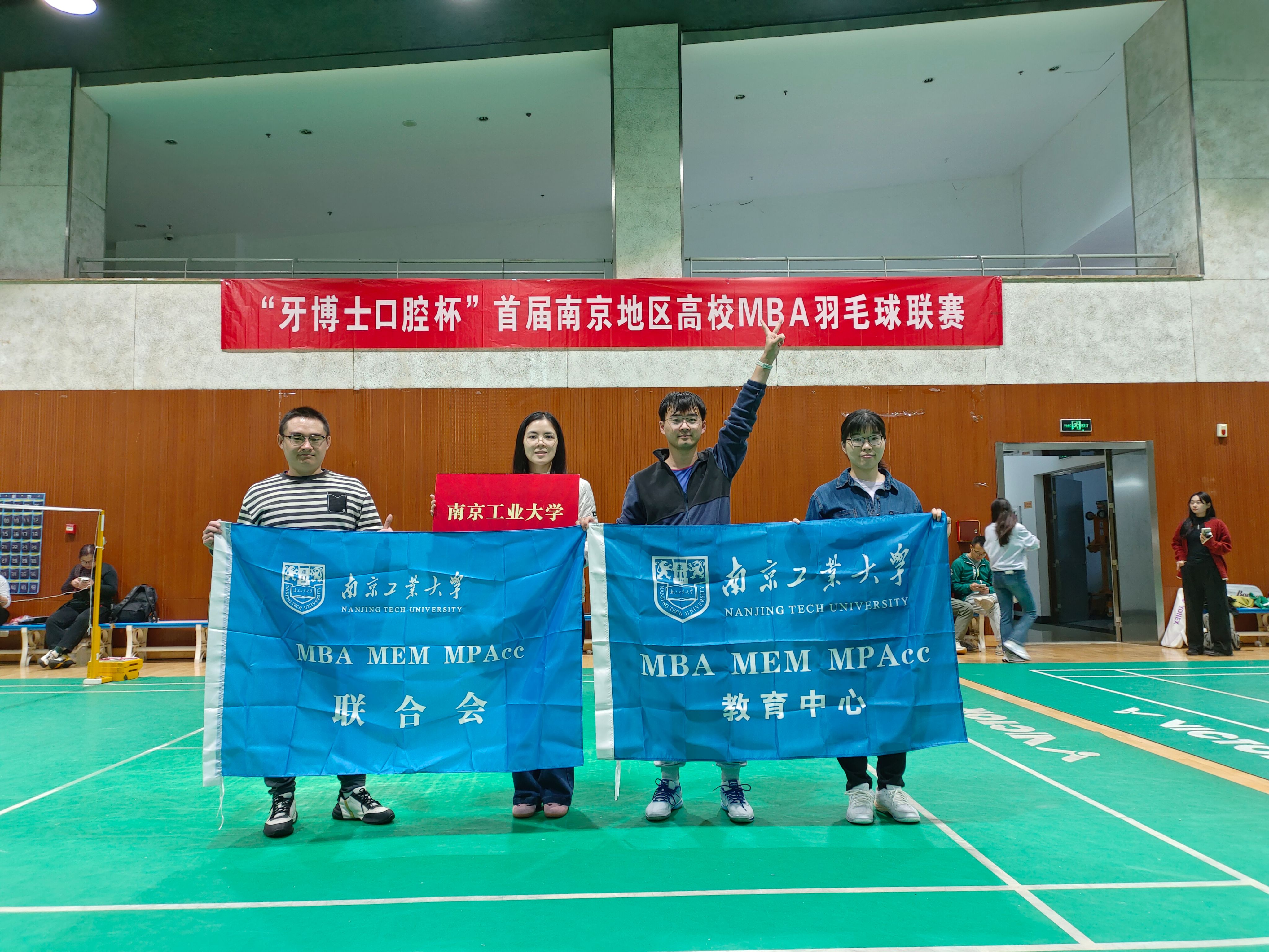 2025年11月16日下午,“牙博士口腔杯”首届南京地区高校MBA羽毛球联赛”在南京农业大学卫岗校区体育中心羽毛球馆活力开赛!本次比赛由江苏省MBA企业家联谊会、南京市MBA联合会鼎力支持,南京农业大学MBA联合会牵头主办,南京大学、东南大学、河海大学、南京师范大学、南京工业大学、南京财经大学和南京信息工程大学MBA联合会联合承办。南京工业大学由2024级MBA邱海龙和2025级MBA刘亚云组队参赛,联合会主席贾靖仪、副主席李双现场观赛,最终获得“奋勇拼搏奖”。